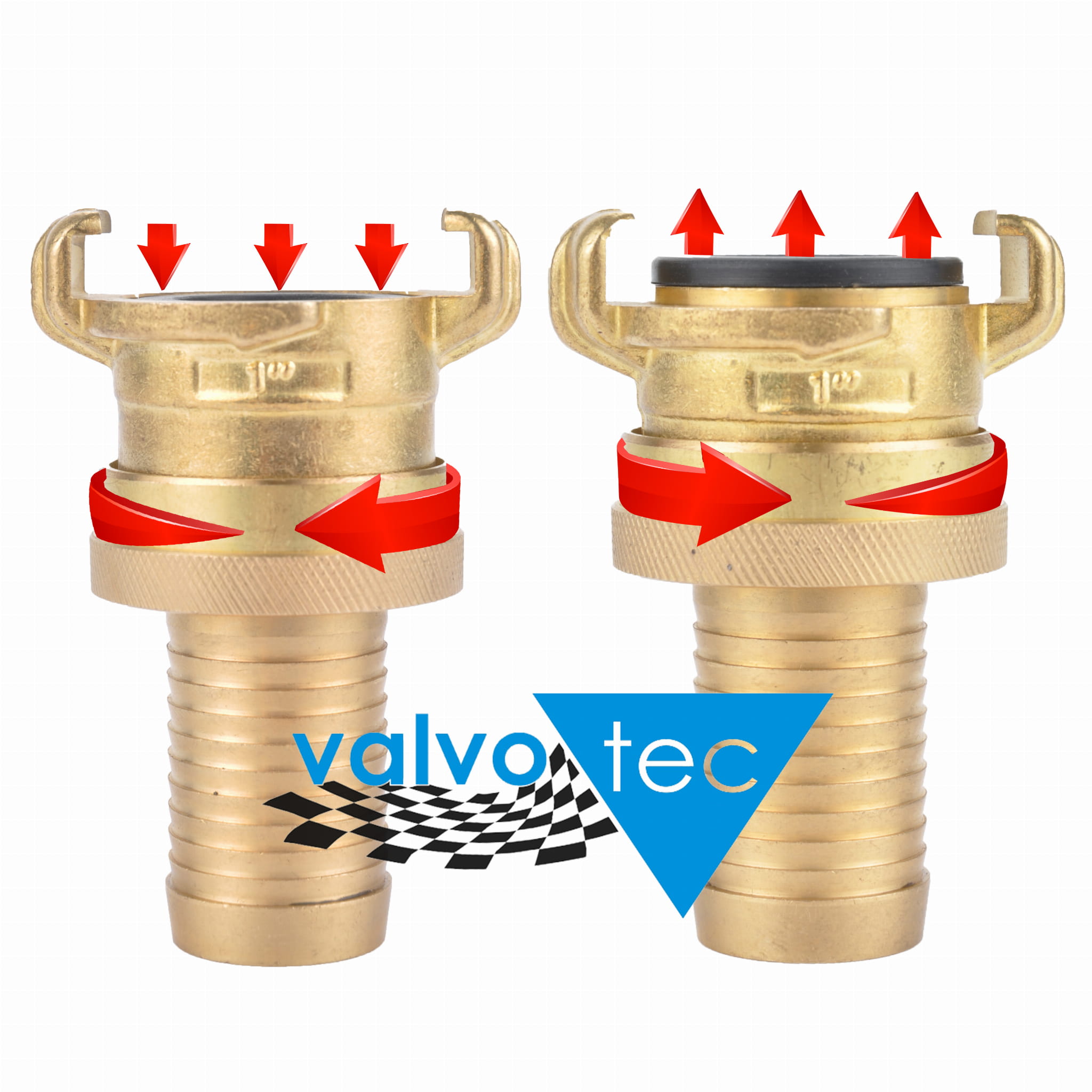 Złącze posiada radełkowany pierścień, którego obrót powoduje dociśnięcie lub poluzowanie uszczelki. Takie rozwiązanie umożliwia szczelniejsze połączenie złączek oraz łatwe, praktycznie bezwysiłkowe ich rozpięcie nawet pod ciśnieniem.