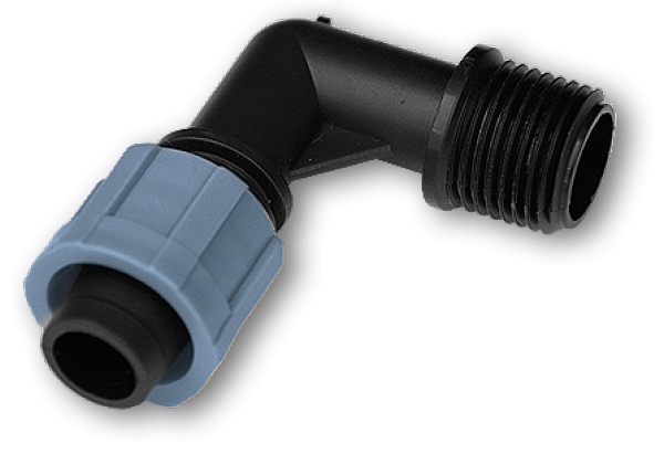 Kolano do taśmy nawadniającej zakończone gwintem zewnętrznym wielkości 3/4"