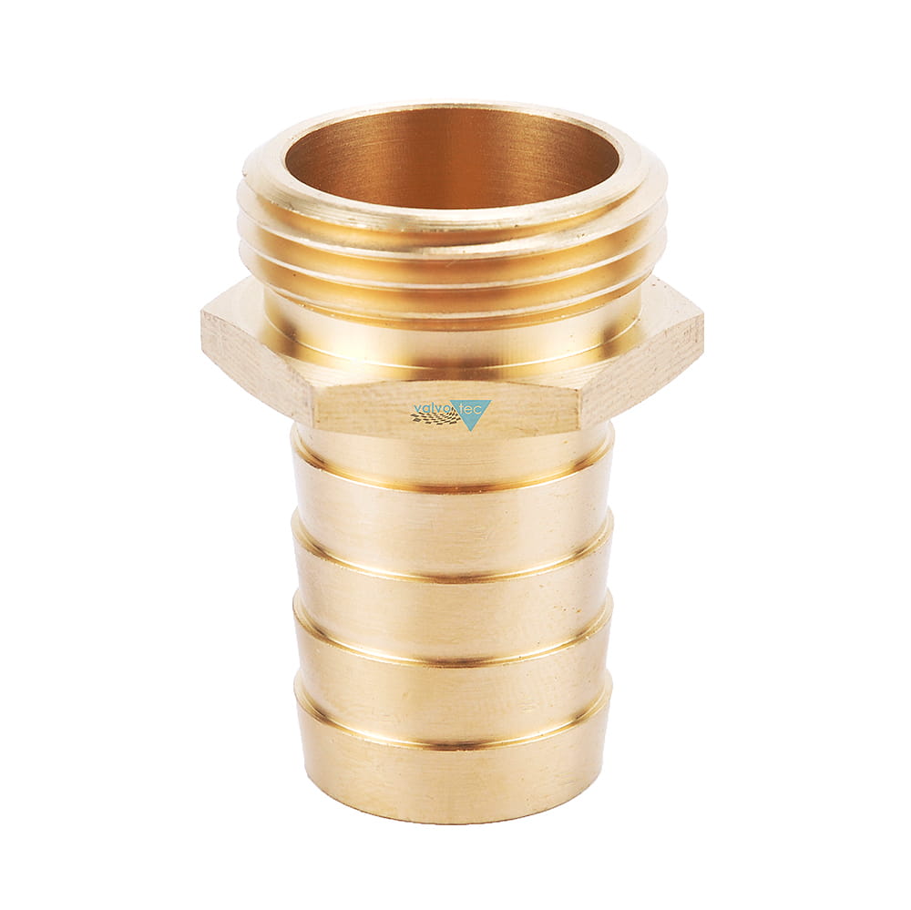 Końcówka mosiężna do węża z gwintem zewnętrznym.
