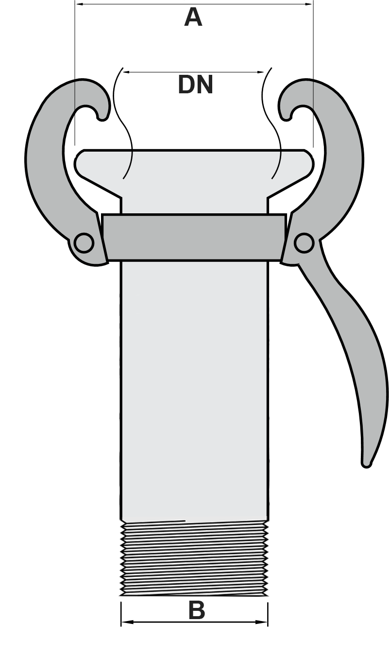 PERROT Złącze / Typ M z gwintem zewnętrznym 70/3" - Złącze gniazdo Perrot ( typ M ) z dźwignią i zaczepami osadzonymi na pierścieniu Kardana, z gwintem zewnętrznym
