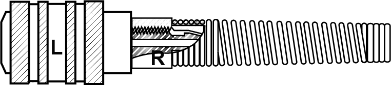 Strona R: przyłącze z nakrętką i sprężyną do rurki tekalan fi 12