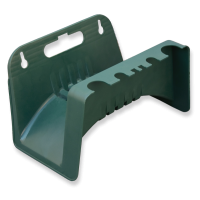 Wieszak na wąż ogrodniczy. Do zamocowania na ścianie. Wykonany z mocnego tworzywa w kolorze zielonym lub czarnym. Wyposażony w uchwyty do zawieszania armatury i małych zraszaczy.