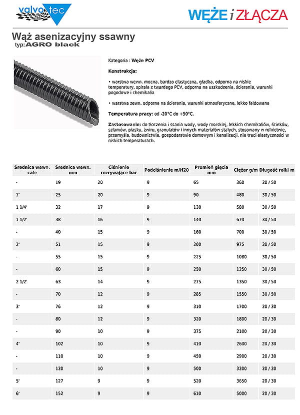 Wąż asenizacyjny 25mm AGRO-BLACK